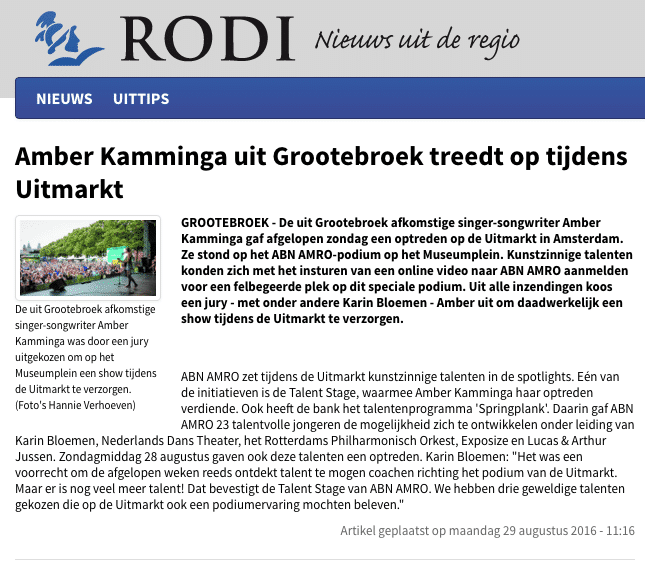 In my last blog I told you about how I won a contest and was gonna play the ABN Amro Talent Stage at de Uitmarkt in Amsterdam. When I wrote that, I figured I was gonna play some small stage on the side but it would look good on my resume. Boy, was I wrong…