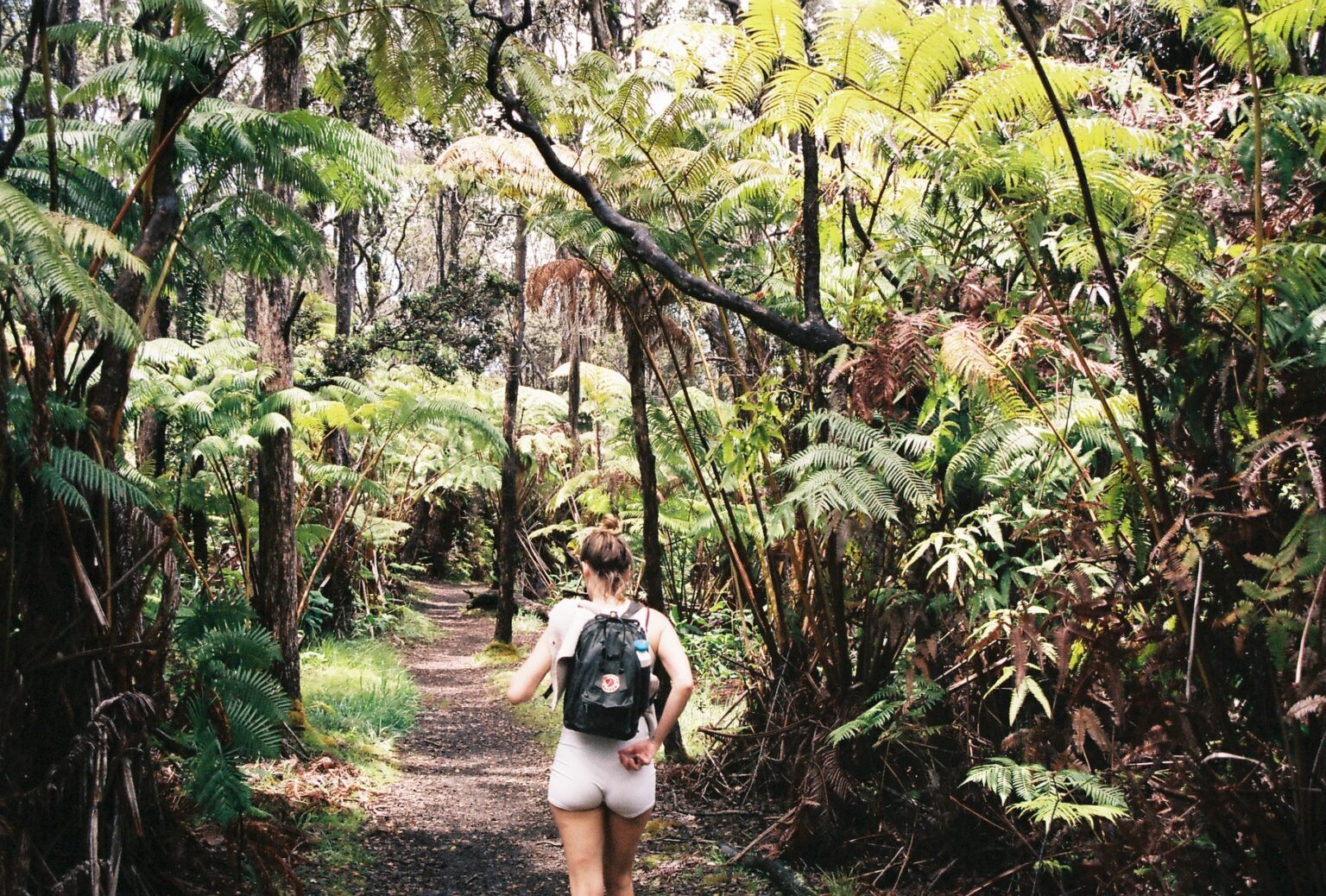 De eerste twee dagen ontbijten we bij Tin Shack Bakery (love) en spenderen we in Hawaii National Volcanoes Park (foto 1,2 & 3), we doen in de ochtend/middag wat hikes en rijden daarna naar het Kehena Black Sands Beach (foto 4) wat werkelijk paradijselijk is met enorm wilde golven. De eerste dag in het Volcanoes National Park doen we de Halema’uma’u Trail tot de Keanakāko’i Crater. Deze hike duurt ongeveer 5 uur en is prachtig, zeker als je net zo gek bent van planten als ik – want je ziet de mooiste creaties hier. Neem vooral een poncho/warme kleding mee, want in het bos kan het frisser zijn en regenen. De tweede dag doen we overdag de Kīlauea Iki Trail dwars door de krater (foto 3 in de slide hieronder), heel vet. ‘s Avonds gaan we terug om vanaf de Keanakāko’i Overlook te kijken naar lava-in-actie, bucketlist momentje (foto 3). We zorgen dat we om 18:15 geparkeerd staan bij de Old Crater Rim Drive zodat we rond zonsondergang (18.45) bij de Overlook staan, want we zijn natuurlijk niet de enige met dit ingenieuze idee en parkeerplekken zijn limited.